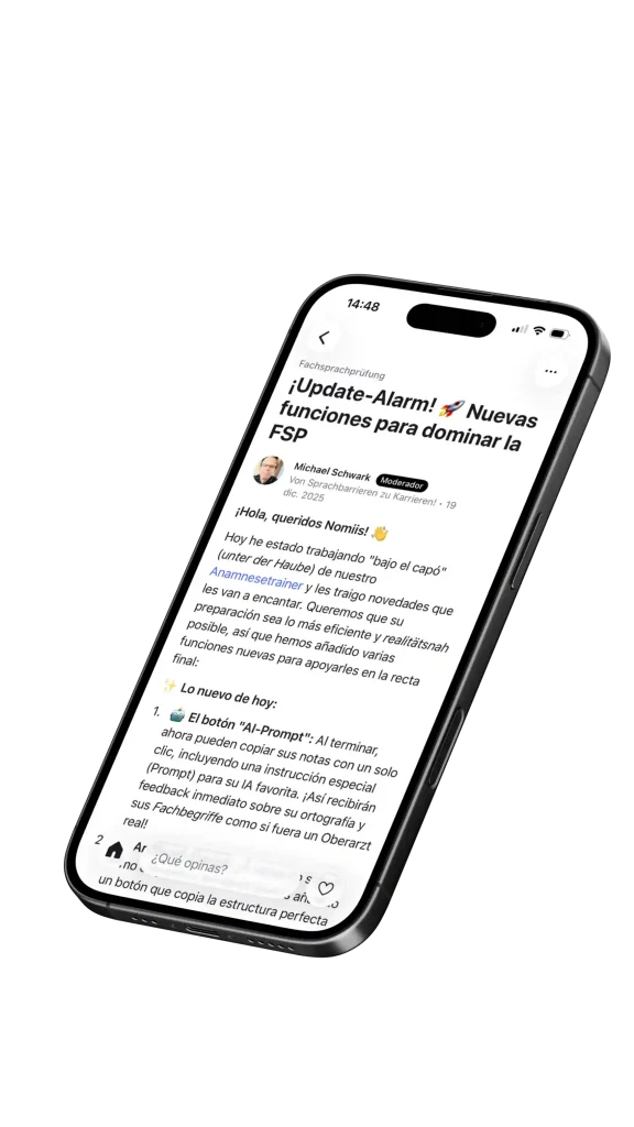Adaptación al sistema médico alemán, terminología clínica, estructura hospitalaria y preparación para exámenes requeridos junto a nuestros partners.